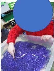 have been developing their fine motor skills and supporting early writing skills by making marks in a glitter, beginning to form recognisable mark/ letters. They have also been busy enjoying our world book day theme this week by having a character hunt, reading their favourite stories and making ‘Winnie the Pooh’ pictures.