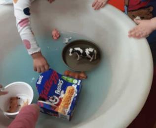Exploring messy play during full body gloop play and the sounds animals make this week. The children have also enjoyed their Tiny Mites session, singing songs and taking part in action songs such as Row, Row, Row Your Boat. They have started to develop their use of cutlery by cutting their own fruit and creating a fruit salad.