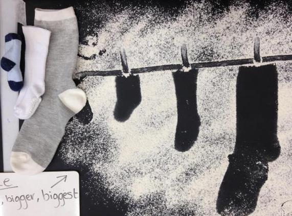 Continuing to explore size by creating our very own winter washing line.