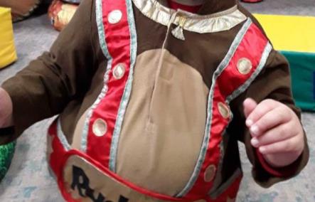 Taking part in their Christmas Tiny Mites music session, creating Christmas pine tree pictures using their finger prints and also dressing up to begin to develop their imaginative play.