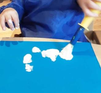 Creating their very own Christmas tree hats, going on a reindeer hunt around the 2-3 areas, taking part in foil painting using different tools and cars to make marks in the paint as well as learning about different seasons.