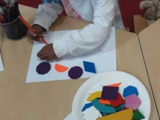 Using 2d shapes to create patterns and colourful shape pictures to create own very own Rangoli patterns, recognising numerals 1 – 10 and matching these to the correct amount of conkers.