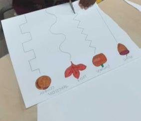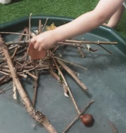 Creating their very own insect houses using twigs, sticks and leaves as well as using scissors carefully to have a go at following different shaped lines to reach Autumnal objects.