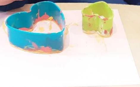 Created heart stamps using paint and plastic heart shaped cutters to celebrate Valentine’s Day, exploring the sensory area using our senses of touch and sight to explore the lights, textured toys and mats as well as playing in the sensory tent. The Babies have also been creating storm cloud pictures using paint, cotton wool and glue.