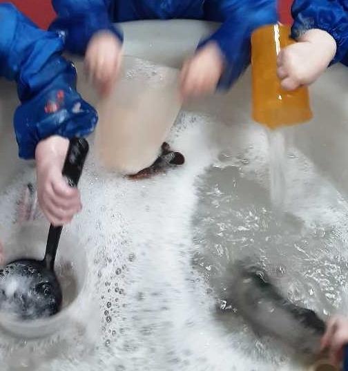 Focusing on the story of The Billy Goats Gruff during story week. The children shared the story through a sensory tray which had a range of different textured materials in. The children then developed their imaginative play along side their peers and adults who shared the story with the children. The children have also been creating treading hearts for Valentines Day and playing in the bubbly water as well as creating their very own yummy pizzas!