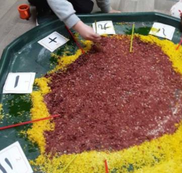 Our Phonics focus has been… Creating our names and marks that we state are our names in a variety of ways. The 3-5’s have also be singing their Jolly Phonic songs to develop their awareness of the most common letter sounds within the English Language ( s,a,t,p,I,n, g,o,c,k.)