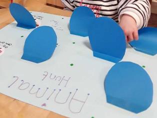Exploring symbolic sounds in a range of ways such as, exploring inset animal puzzle books and identifying hidden animals. The Toddlers have also been creating Valentines Day crafts and riding on the rocking horse.