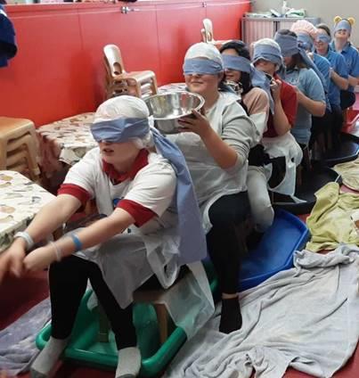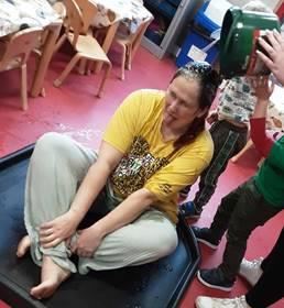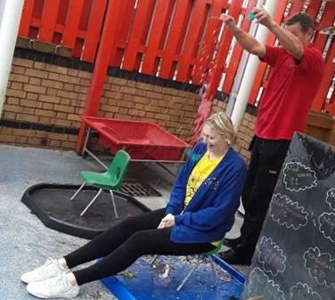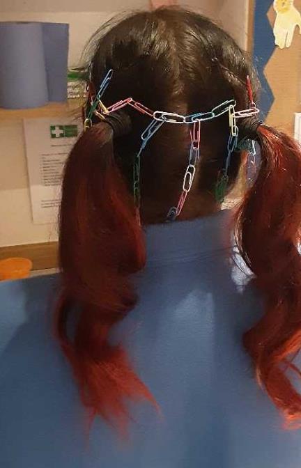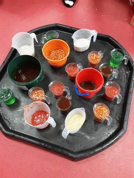 Roleplaying cooking and mixing using natural objects. They have been making Pudsey hats, biscuits and have taken part in a Pudsey hunt around the nursery. They have also been taking part in parachute games and have been practicing fine motor skills when exploring puzzles and activity boards.